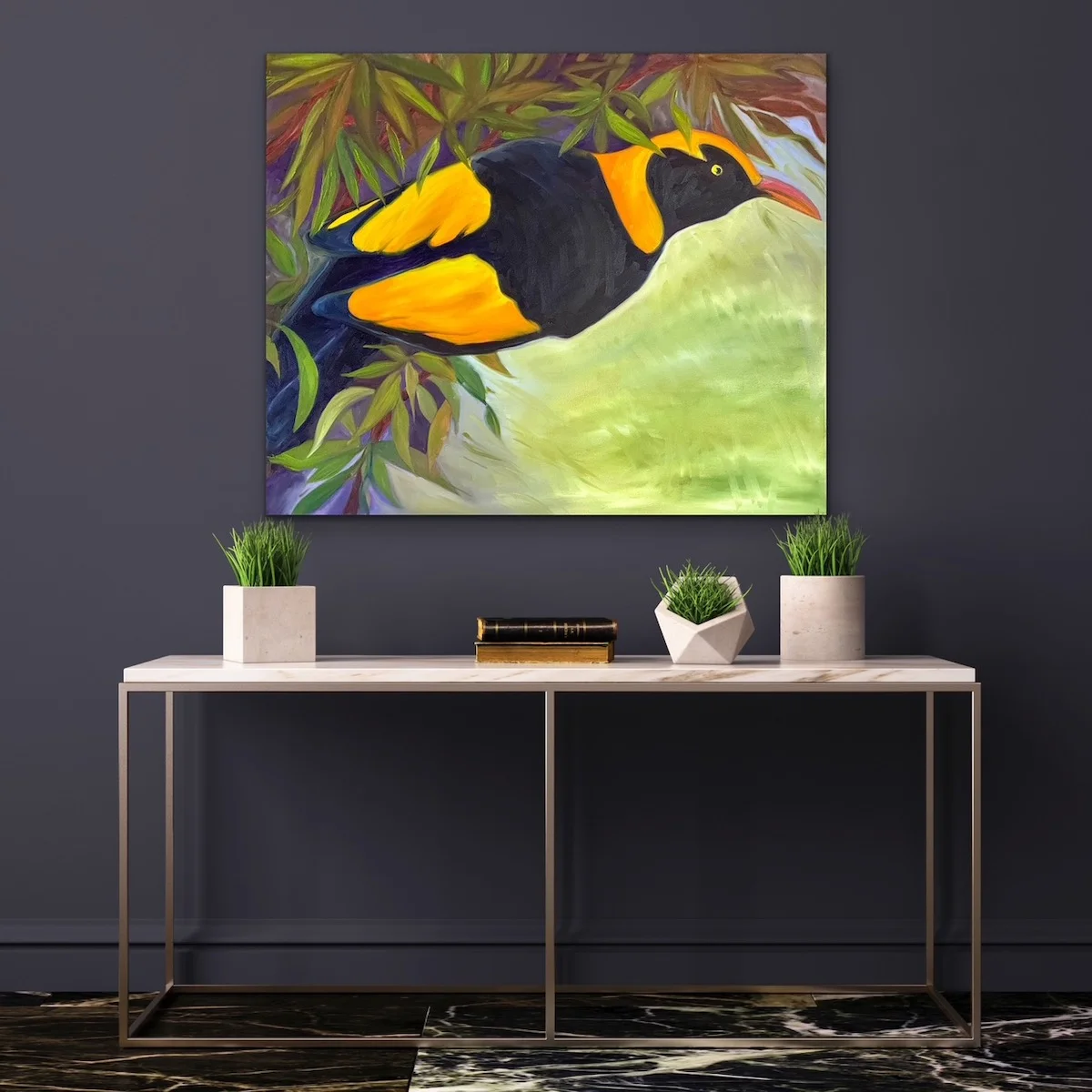 The Regent Bowerbird Bird is one of my favourite birds. Bright and cheeky. The yellow and black contrast beautifully. The painting is an original artwork, signed on the front, varnished for protection and ready to hang with secure hardware.